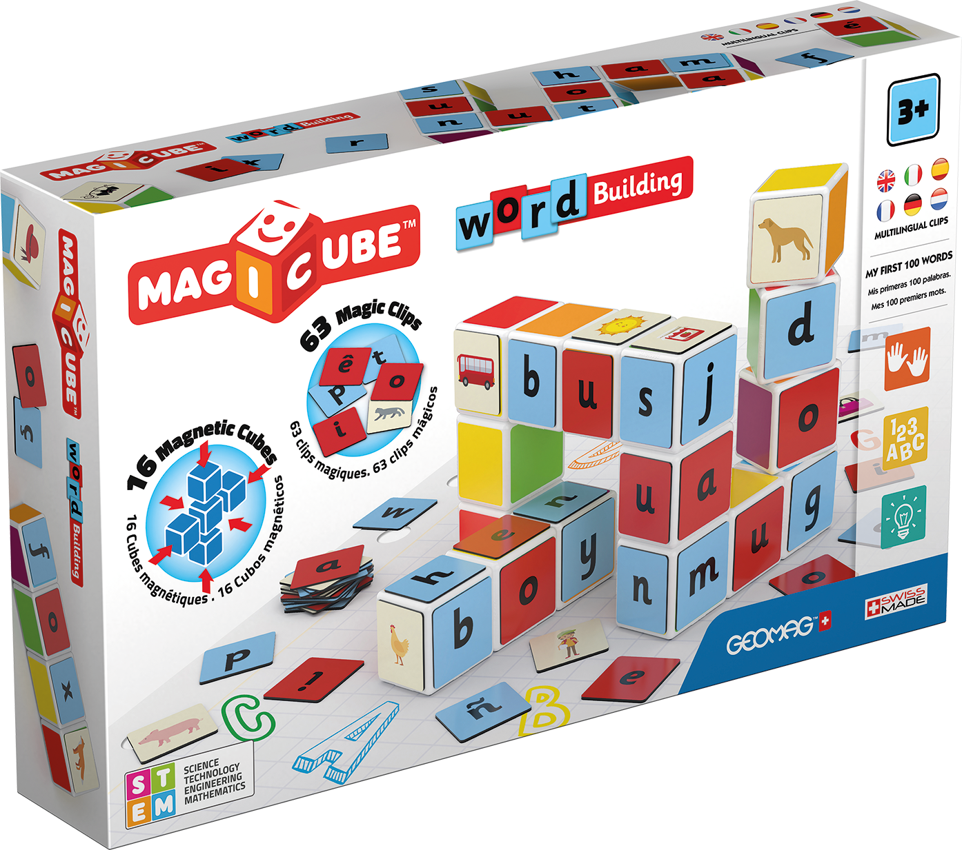 Children will also have the ability to build different shapes, color combinations and 3D structures using Geomag Magicube Word Building 79 pcs that are uniquely designed to connect on all sides.