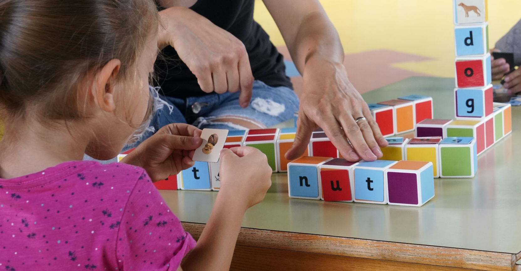 Watch your toddler learn and begin to distinguish letters, build their first words and match to an image.