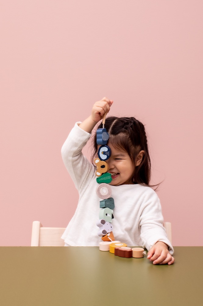 The perfect way to train those little fingers! Gather all animals using the wooden needle at the beginning of the string. Children learn to perform complex and precise movements with their hands while playing. The lacing beads are made of 100% FSC® certified wood. All paints on this product are water-based, safe for children and non-toxic.